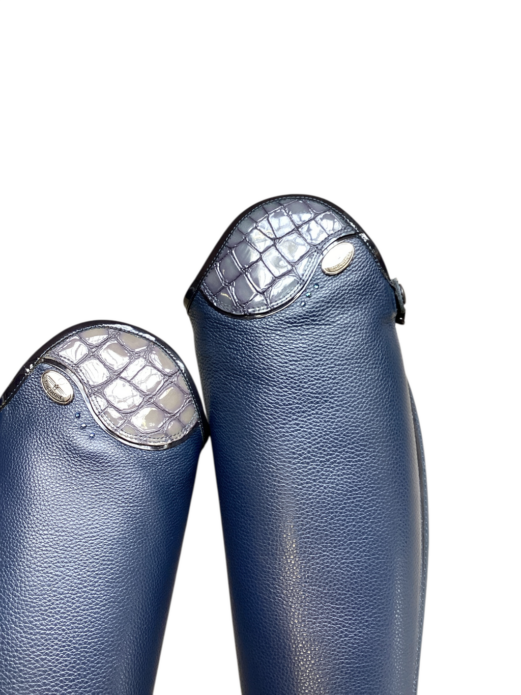 Tricolore Salentino rijlaarzen worden geheel naar eigen wens samengesteld. Kies voor generfde of laklederen rijlaarzen in de kleuren zwart, bruin of blauw. Voor de top bestaat de keus uit verschillende opties: Lucide, Regal Sakara, Bolgheri of lakleder. Tevens de top piping en de toe cap worden naar eigen wens gemaakt in elke kleur lakleder of Lucidi. Dankzij het geheel gepersonaliseerde ontwerp van de Tricolore Salentino rijlaarzen is elke rijlaars uniek!