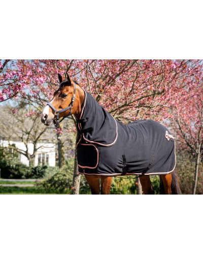 Luxe 400 grams polar fleece showdeken metteddy bont kraag en borstflapen afneembare hals,afneembare kruissingels en2 sier rose koorden en rose hippornamentsfournituren zijn gemaakt van black satin